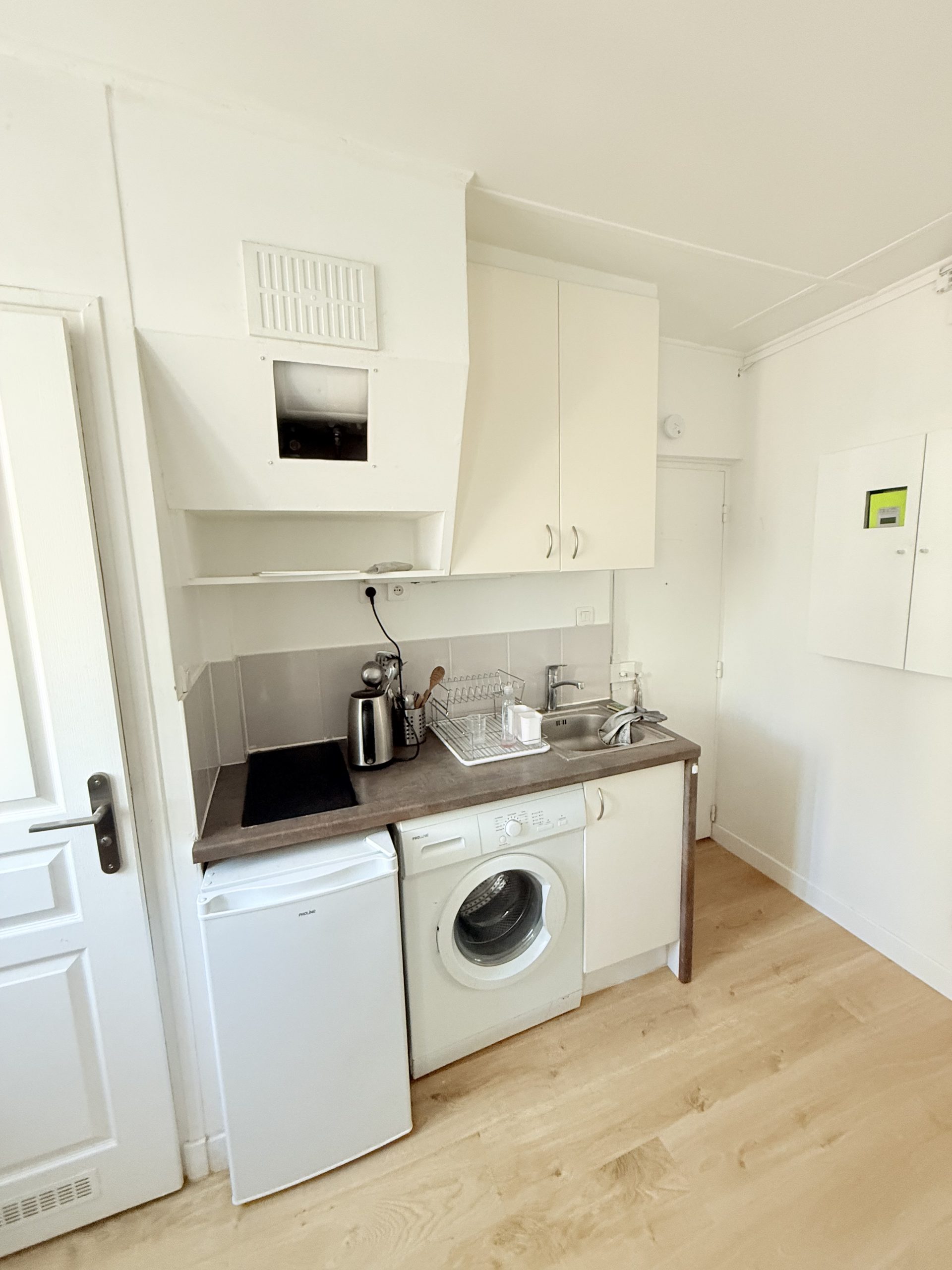 Cimetière Montmartre, rue du Capitaine Madon, charmant studio avec sa mezzanine, sur cour dégagée sans vis à vis, pièce principale, kitchenette, salle d'eau, coin nuit sous combles aménagés. sup. Habitable 14.52m- sur. Sol : 25.81m2 - surp.pondérée : 18.28m2. Quelques travaux de rafraîchissement et il sera à vous.