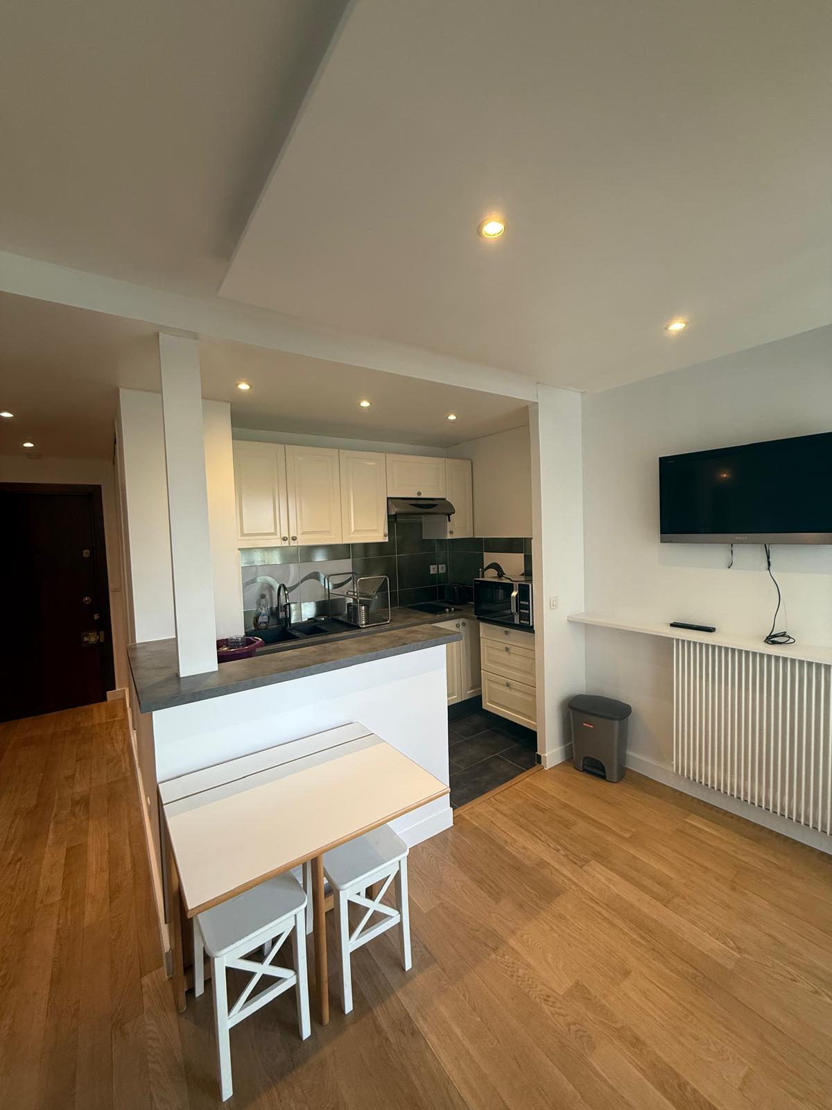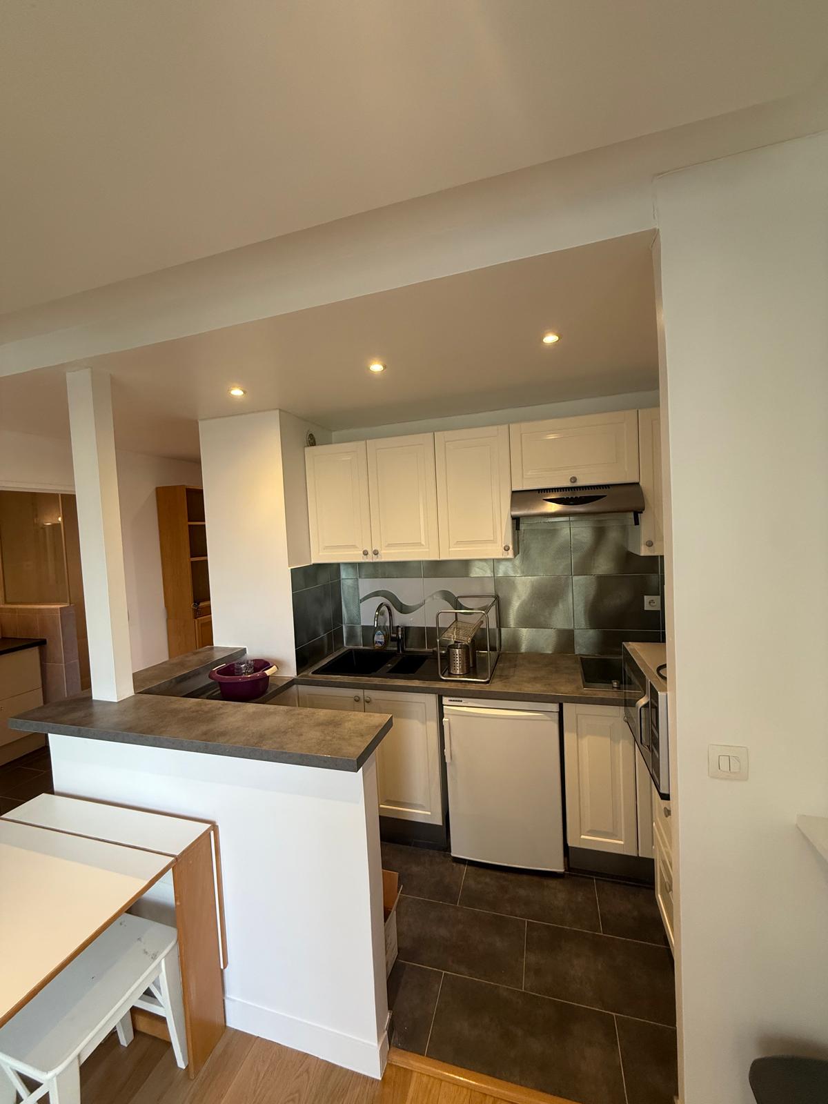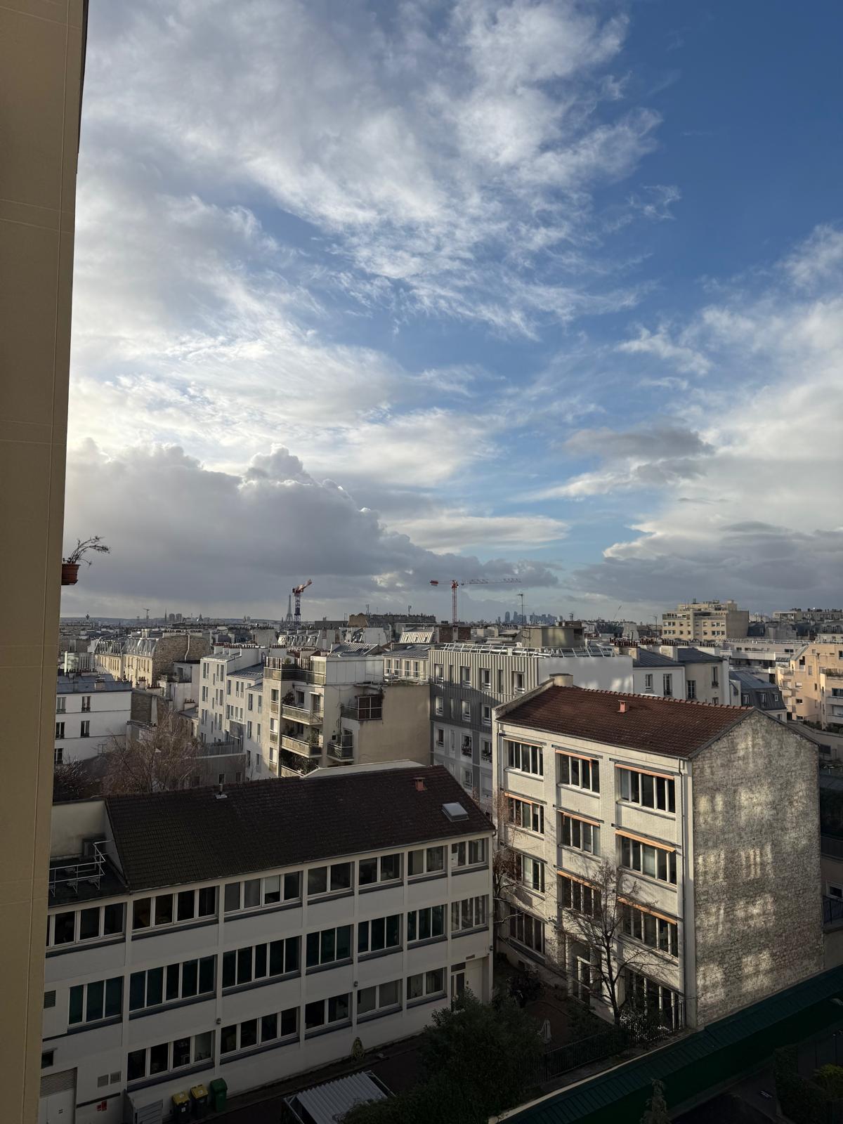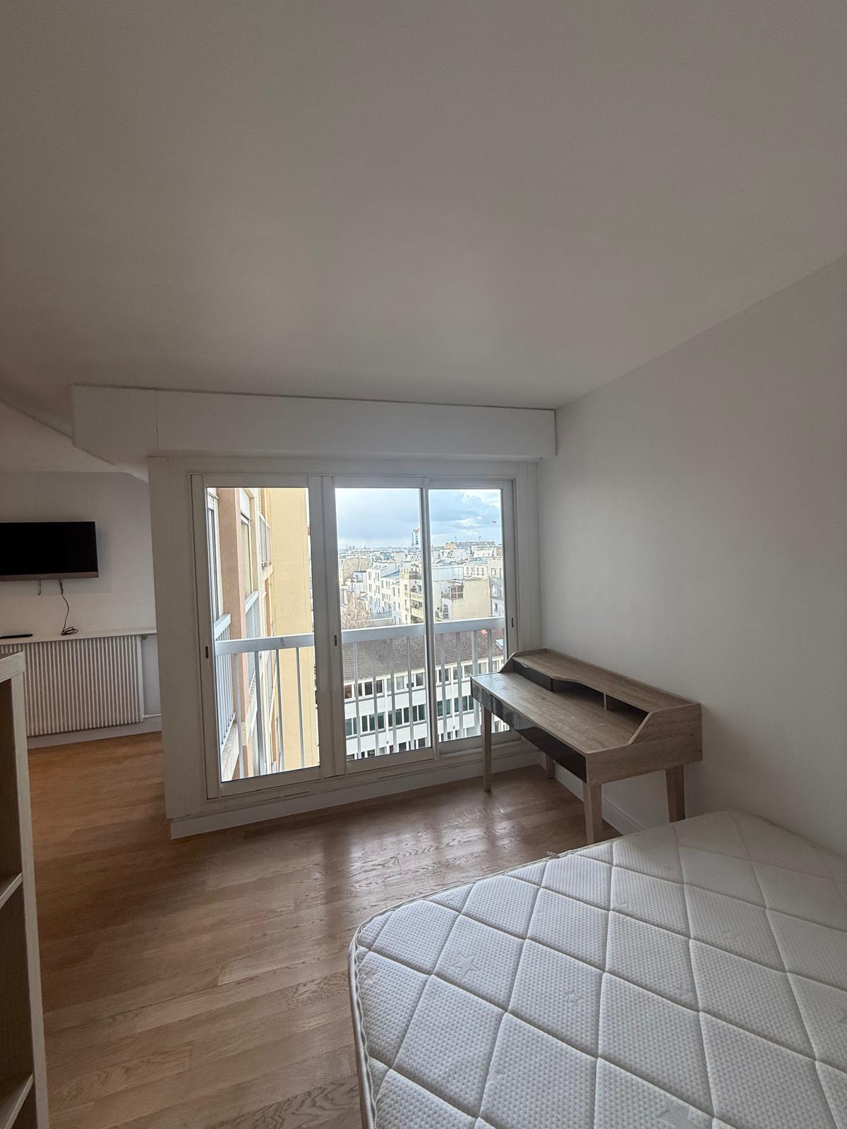 En étage, vue dégagée, panoramique, 7ème étage par ascenseur, comme une suite d'hôtel, grand studio meublé et équipée : coin cuisien (plaques de cuisson lave linge, réfrigérateur...), lit double, dressing, belle salle d'eau (douch, lavabo, wc). A deux pas des métros Alenxandre Dumas ou Charonne, au pied des commerces. En complément, un emplacement de parking.