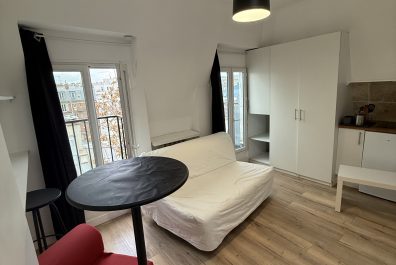 Marché d'Aligre, proche Gare de Lyon/Bastille, 5ème et dernier étage, un studio meublé avec coin cuisine équipée et salle d'eau (douche, lavabo et WC).