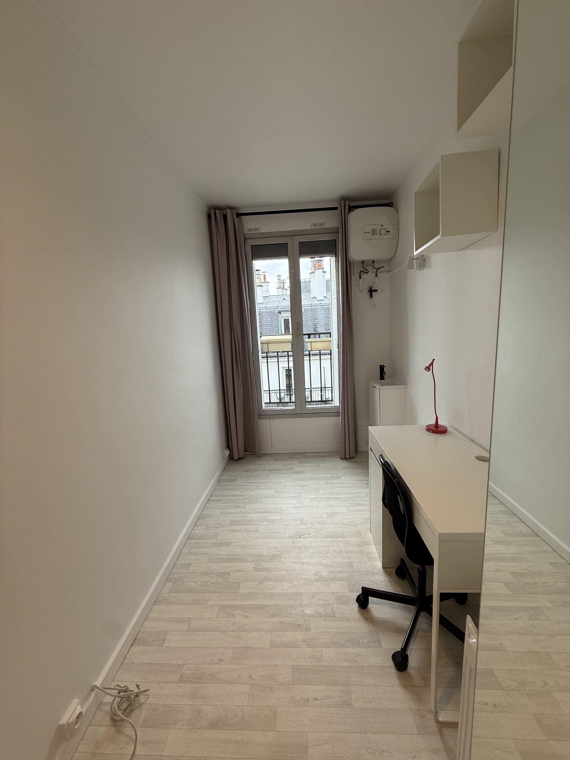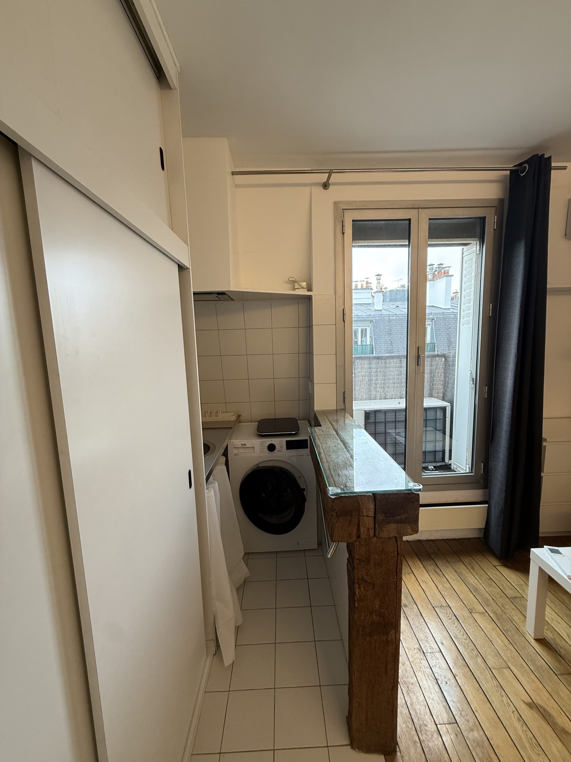Paris 17ème arrdt, quartier des Ternes, dernier étage ascenseur, en très bon état d'usage, un logement deux pièces meublé composé d'une pièce principale avec cuisine ouverte équipée, salle d'eau (douche, lavabo et wc), une chambre. Lumineux, calme, belle copropriété, libre de suite.